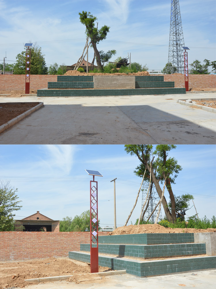 簡介—— 陜西省渭南市澄城秦漢宮移民小區太陽能路燈工程,移民區的項目是國家為了集中改善農村居民的居住和生活環境,將零散的農村居民集中在一起進行安置的好項目,我們蘭光照為移民工程提供了實用性比較強的3.5米單板單頭節能太陽能庭院燈,造型簡單,光源亮度好,非常經濟實惠,實用高效。