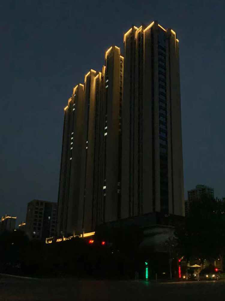 簡介—— 蔚來熙語項目位于航天城航天中路與神舟二路十字東南角,項目占地15畝,由2棟公寓及其商業(yè)生活配套組成,Art deco的建筑風格。我司承擔外立面亮化工程,對樓體頂部打亮及樓體線條的勾勒,做輪廓亮化,突出整體建筑,美化樓體。